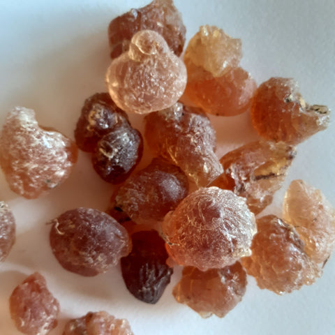 Gummi Arabicum ist das Harz der Akazie. Es schützt und klärt die Atmosphäre vor negativen Einflüssen. Es öffnet das Herz für inneres Licht und macht feinfühlig. Unterstützt die Nächstenliebe. Sehr fein im Duft, riecht wenig.