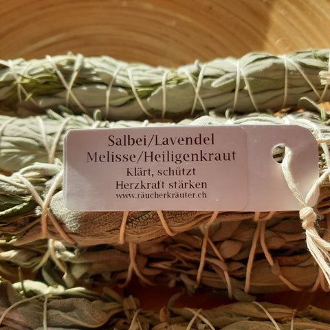 Räucherbündel sind für die Reinigung der Aura sehr geeignet, zum Beispiel bei Ritualen für uns selbst, von Räumen und Gegenständen. Sie werden direkt angezündet und glimmen vor sich hin (ohne Kohle). Da sie etwas Asche fallen lassen, sollte ein Auffanggefäss darunter gehalten werden oder im freien Verwenden.