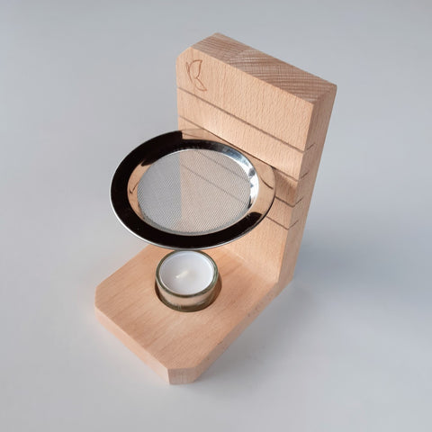 Räuchert man gerne Harze auf dem Stövchen, empfehle ich einen Harzteller oder Alufolie auf das Sieb legen, da das Sieb verklebt und das Harz sich entzünden kann.