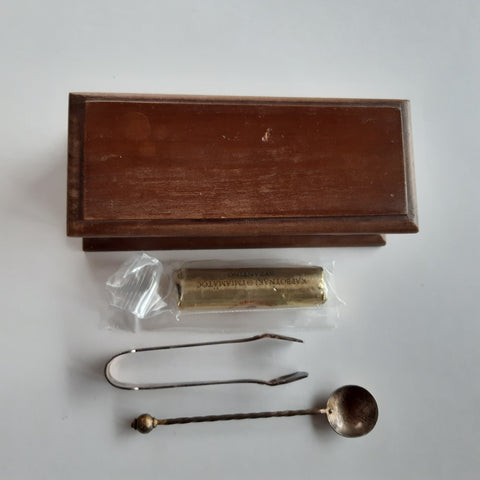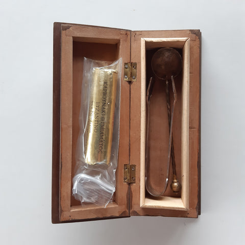 Ca. 5 cm hoch, und 17 x 8 cm. Spezieller Räucher- löffel und zange, eine Kohlerolle 2 cm.