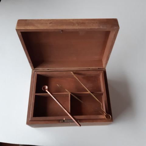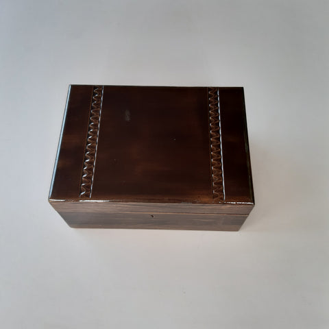 braune Holzschatulle mit herausnehmbarem Innenfach.